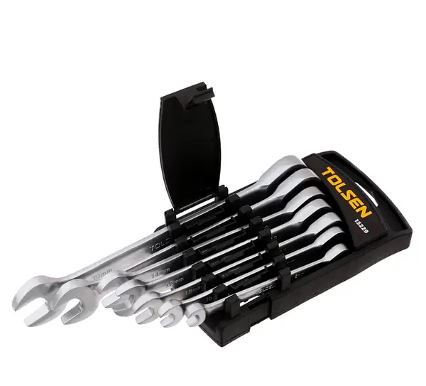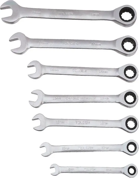 Bộ cờ lê vòng miệng tự động 7 pcs Tolsen 15229 là bộ dụng cụ chất lượng cao được làm từ thép Cr-V bền bỉ, với các kích thước phổ biến và cơ chế bánh cóc tiện lợi