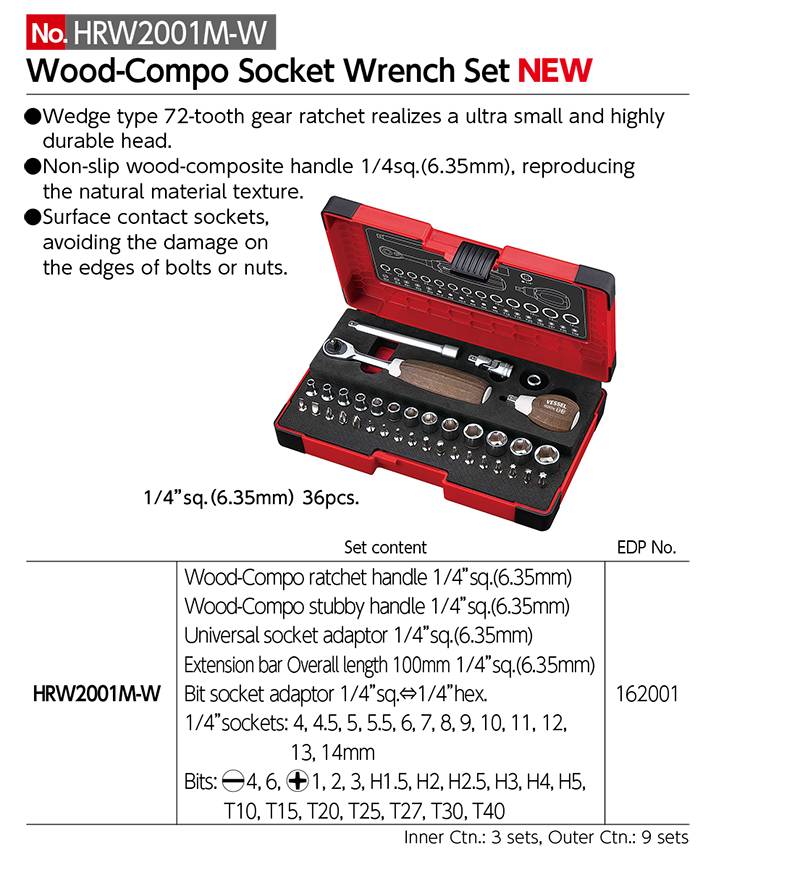 Bộ khẩu 1/4″ (36 món) No. HRW2001M-W là sản phẩm chính hãng của thương hiệu Vessel (Nhật Bản)