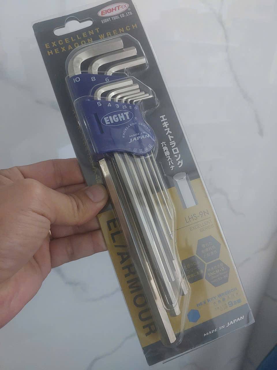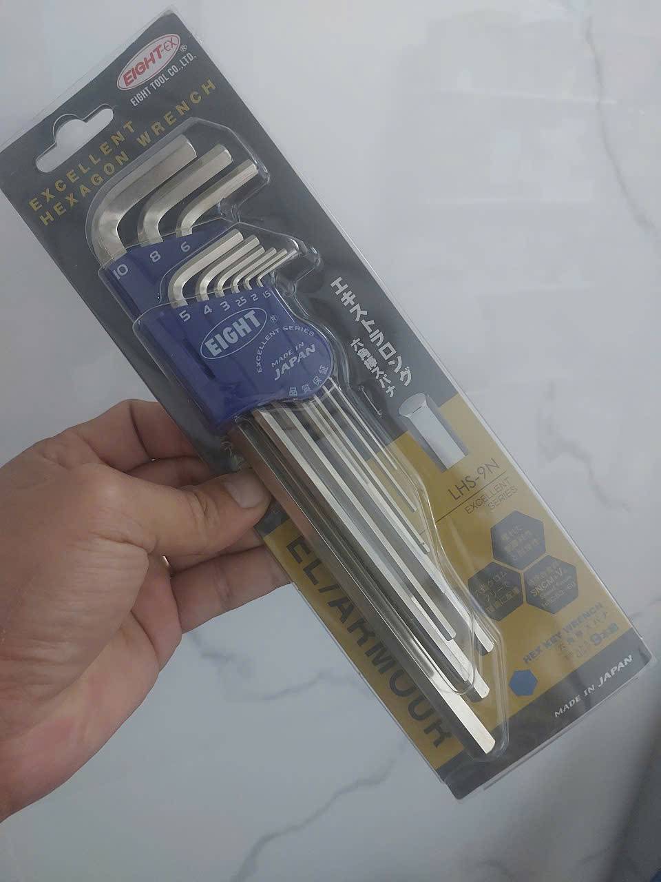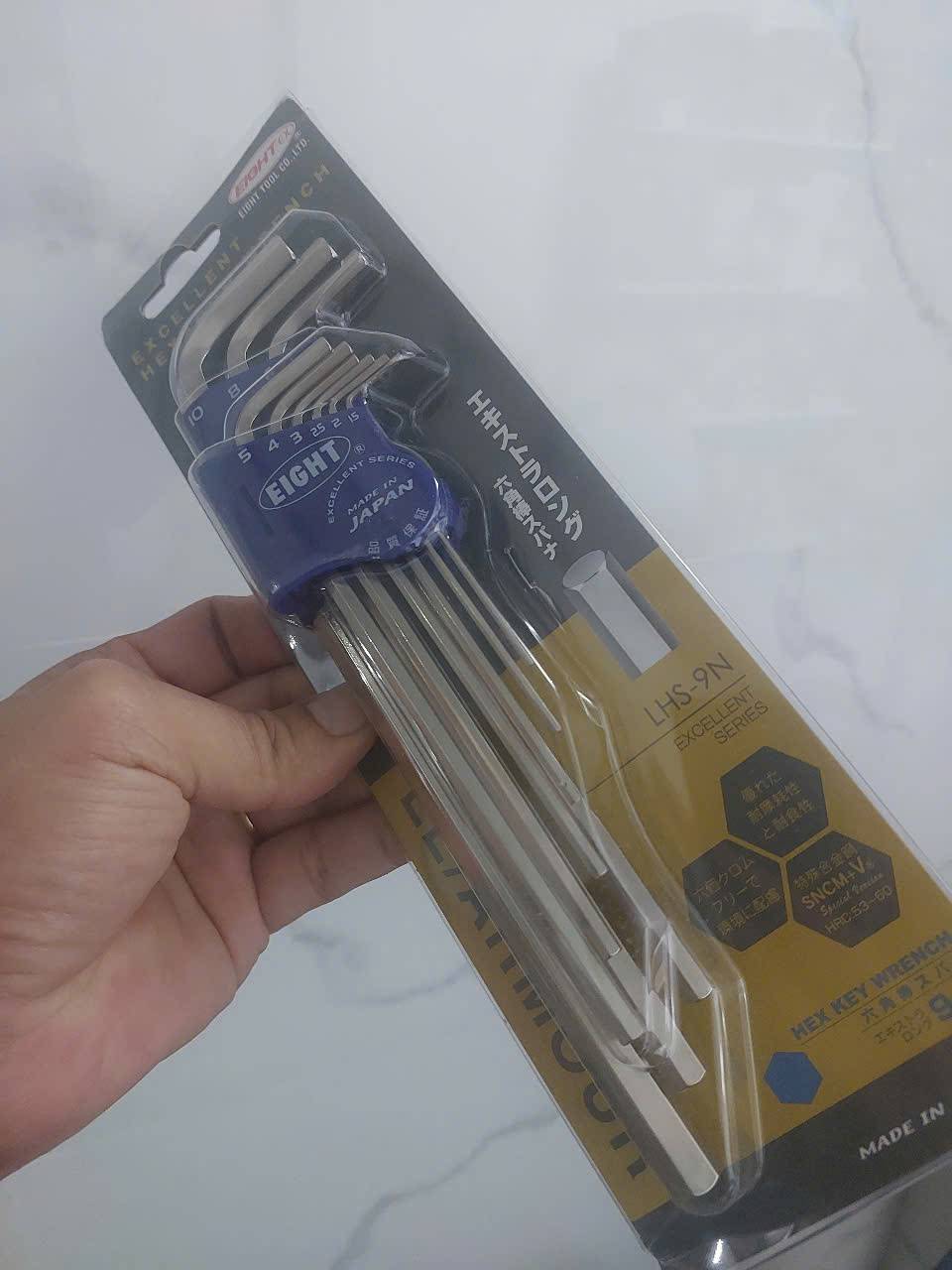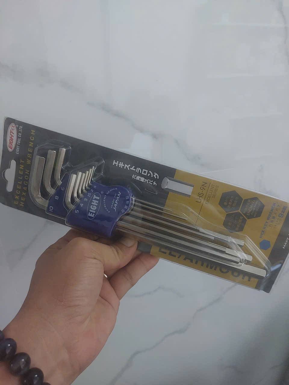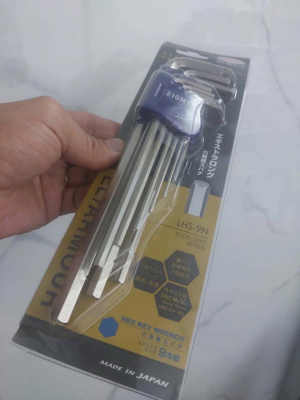 Bộ lục giác đầu bằng EIGHT LHS-9N là bộ dụng cụ chất lượng cao gồm 9 chiếc, được sản xuất tại Nhật Bản, nổi tiếng về độ bền và độ chính xác, thích hợp để tháo lắp các loại ốc lục giác chìm hệ mét