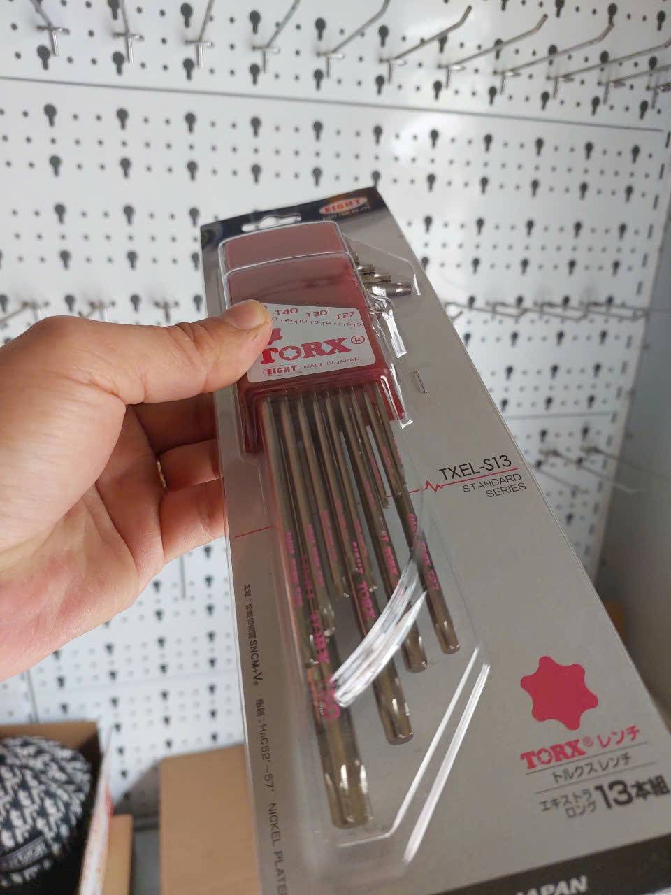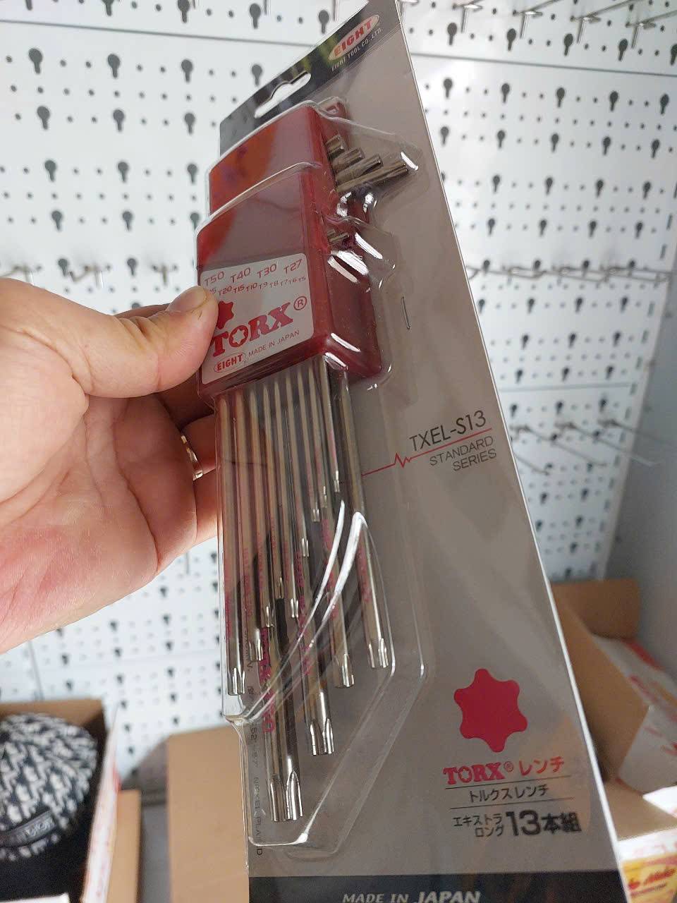 Bộ lục giác hoa thị Eight TXEL-S13 là một bộ dụng cụ chất lượng cao, sản xuất tại Nhật Bản, chuyên dùng để vặn và tháo các loại ốc vít có đầu hình hoa thị (Torx®)
