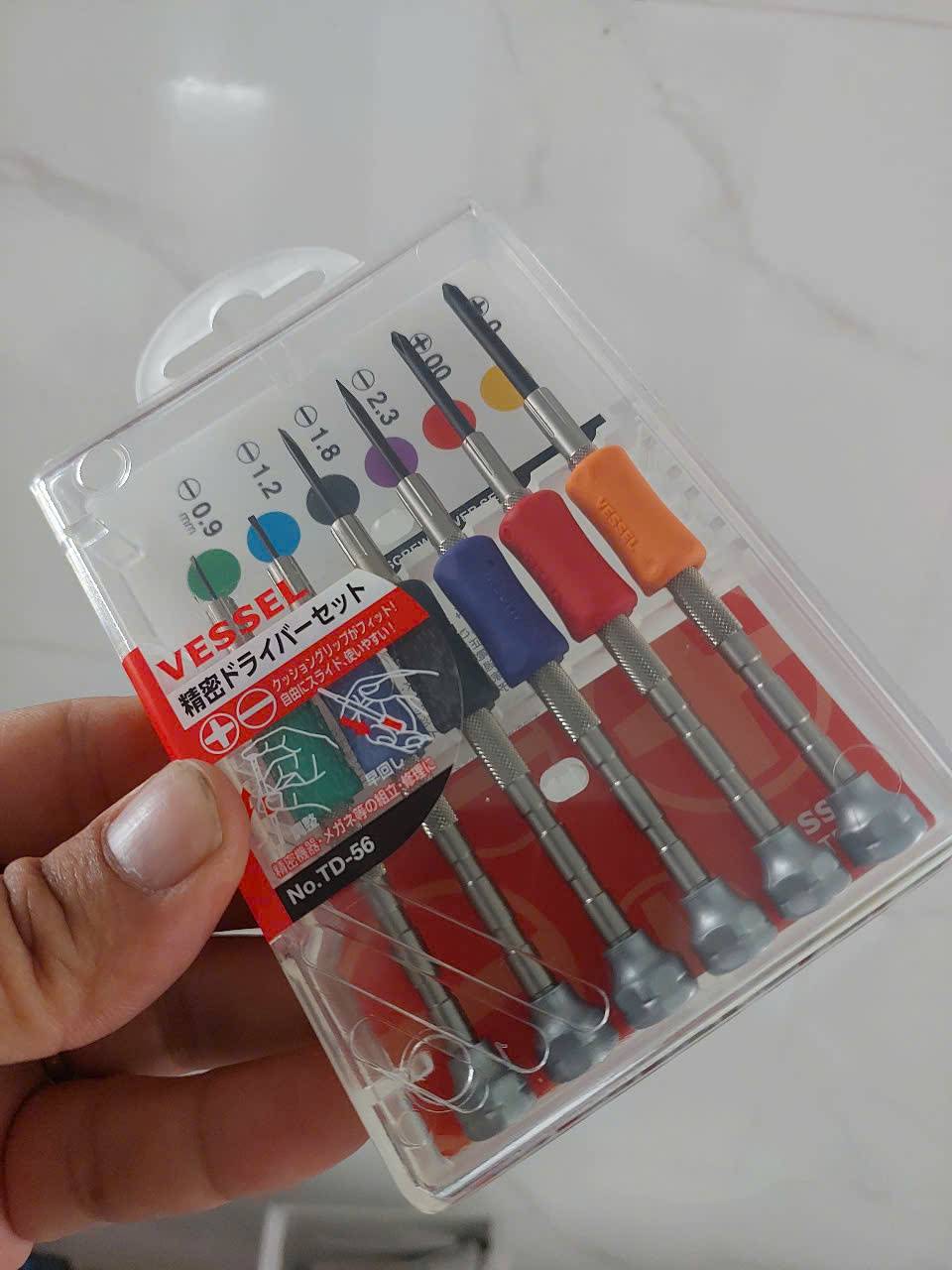 Bộ tô vít chính xác Vessel TD-56 hay còn gọi là bộ tua vít siêu nhỏ gồm 6 tô vít siêu nhỏ với đầu tô vít (-0.9/-1.2/-1.8/-2.3/+00/+0mm) dùng để siết những ốc vít nhỏ chuyên dùng trong sửa máy tính, điện thoại, máy ảnh, đồng hồ, đồ điện tử,…