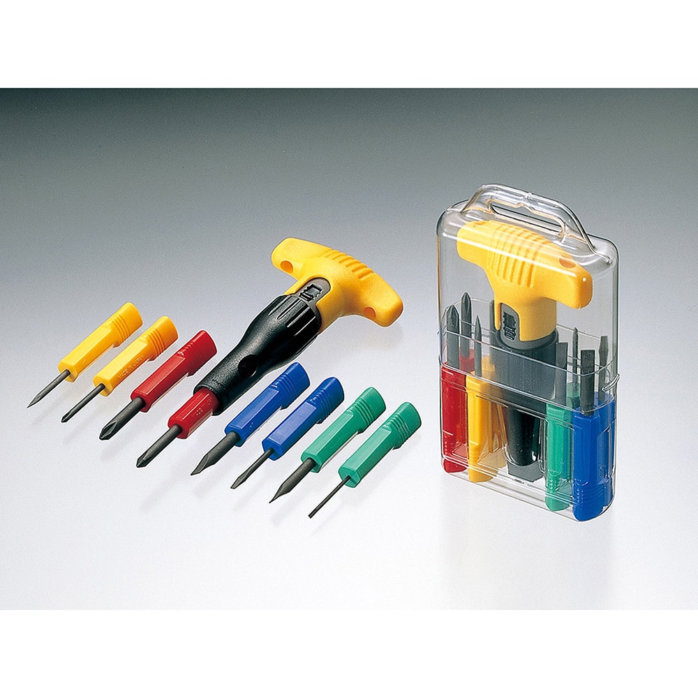 Bộ tô vít đa năng Anex No.5700 là sản phẩm cao cấp đến từ Nhật bản. Một bộ các kích thước thường được sử dụng thông dụng +0, +1, +2, -1.8, -2.5, -5, -6. Tay cầm bánh cóc cho phép bạn xoay vít bằng cách xoay trái và phải nhiều lần mà không cần thay đổi tay cầm. Lưỡi cắt có nam châm đi kèm hộp đựng chuyên dụng.