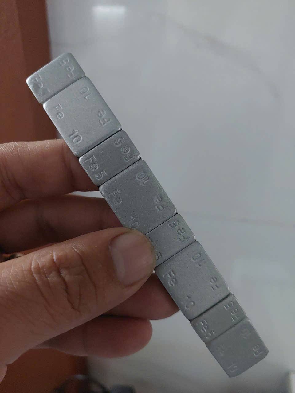 Loại chì dán mâm ô tô có 4 miếng 5g và 4 miếng 10g xen kẽ ký hiệu: ( 5 -10g x 4)