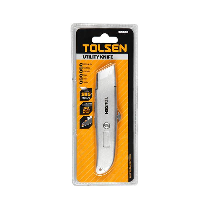 Dao rọc giấy Tolsen 30008 là một dụng cụ cầm tay lưỡi liền cán nhôm với kích thước 61 x 19 mm, nổi bật với độ bền và lưỡi thép sắc bén.