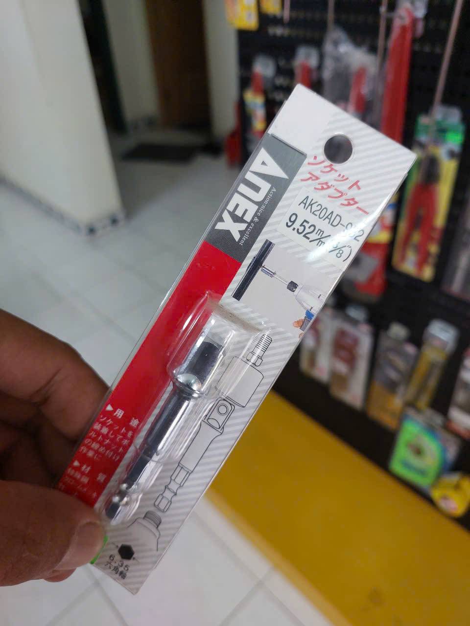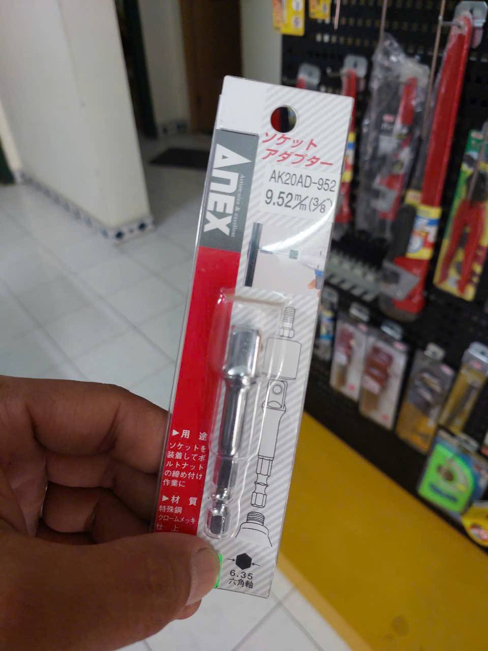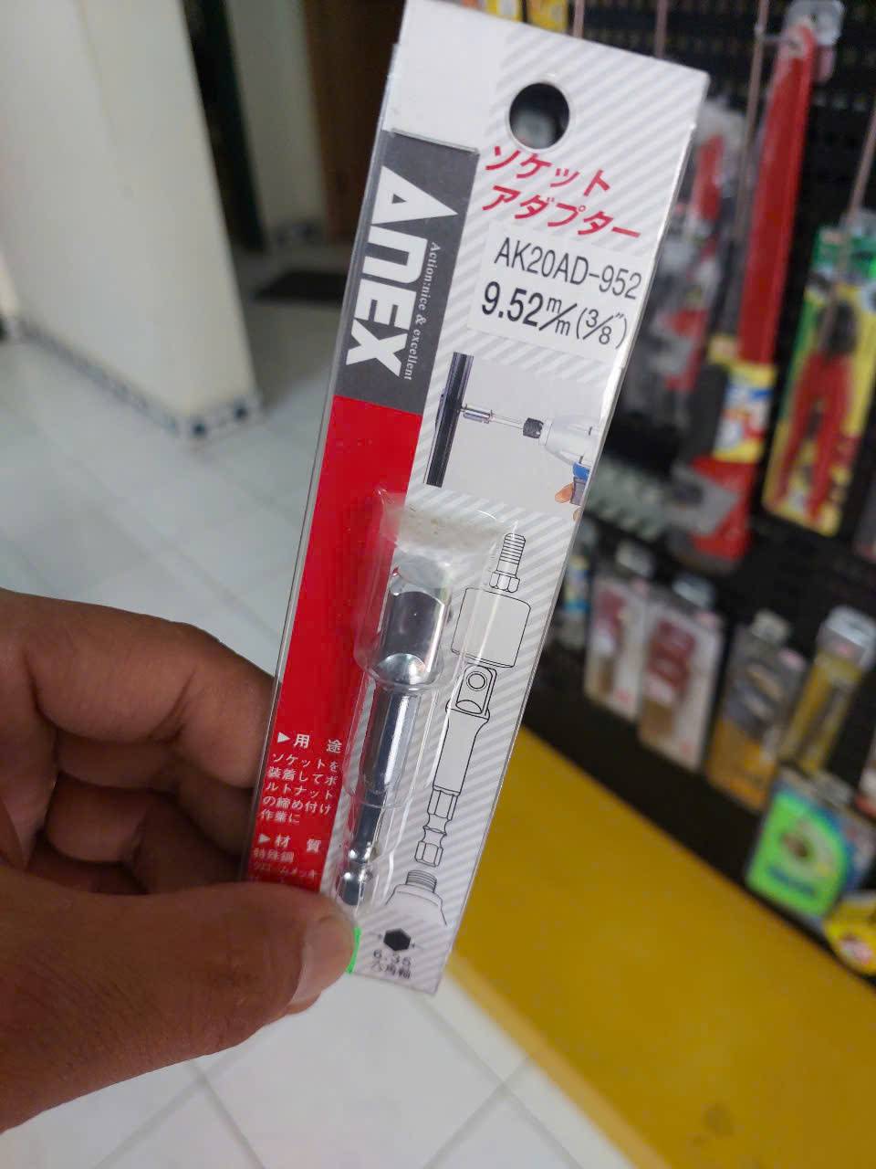 Đầu chuyển đổi ổ cắm 3/8″ Anex AK20AD-952 là một phụ kiện tiện dụng của Nhật Bản, giúp bạn mở rộng khả năng sử dụng các dụng cụ cầm tay bằng cách gắn các đầu khẩu (socket) 3/8 inch vào máy vặn vít hoặc máy khoan điện