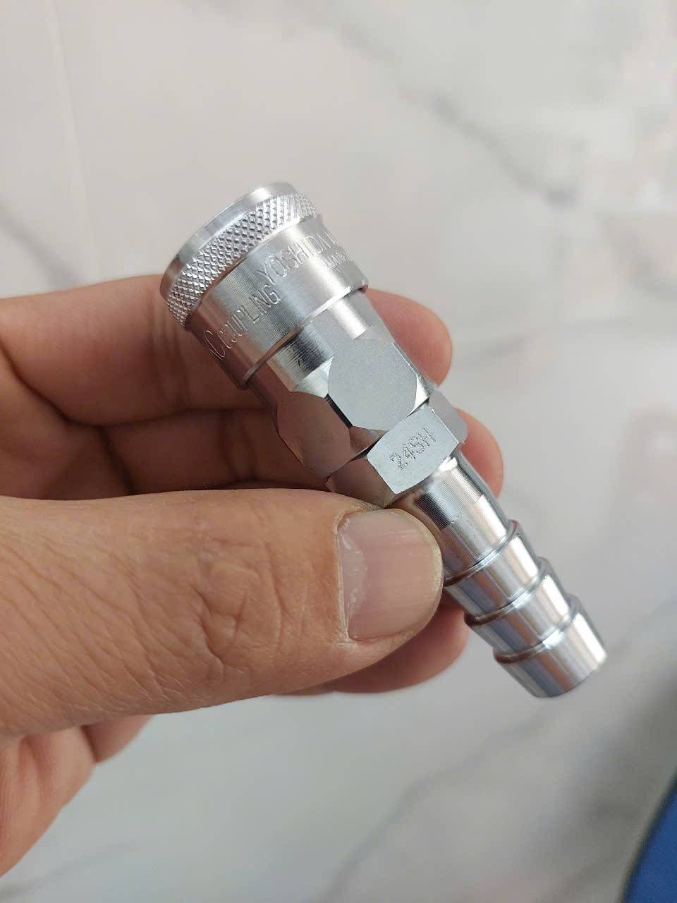 - Kiểu kết nối: Đuôi chuột (Hose Nipple) – dùng để cắm trực tiếp vào ống dây hơi.