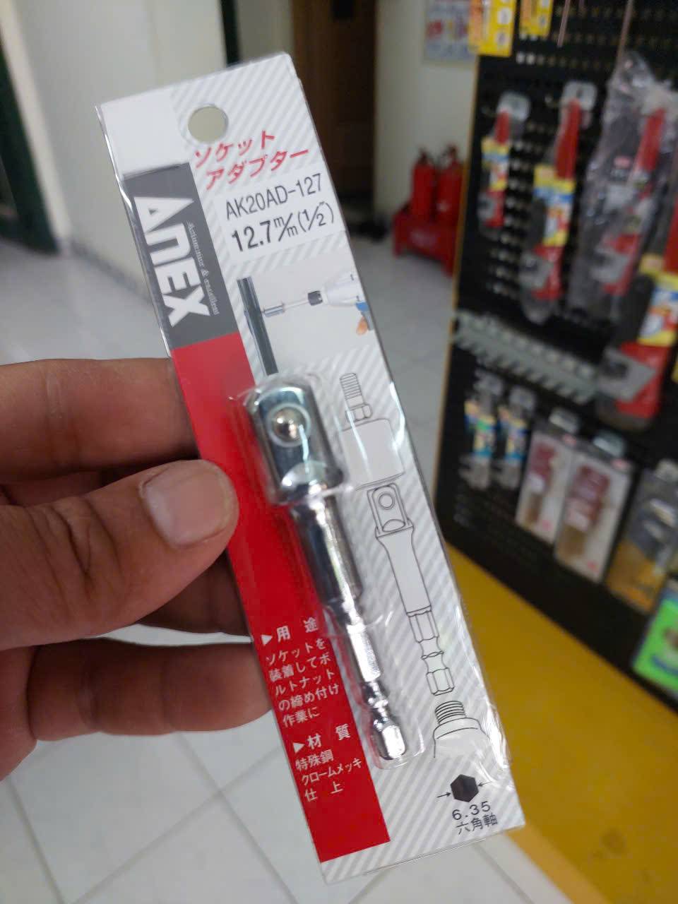 Đầu vít chuyển đổi ổ cắm Anex AK20AD-127 là một phụ kiện hữu ích giúp bạn kết nối các đầu khẩu 1/2 inch với máy vặn vít hoặc các dụng cụ có chuôi lục giác 6.35mm. Sản phẩm này được sản xuất tại Nhật Bản, nổi tiếng về chất lượng và độ bền.