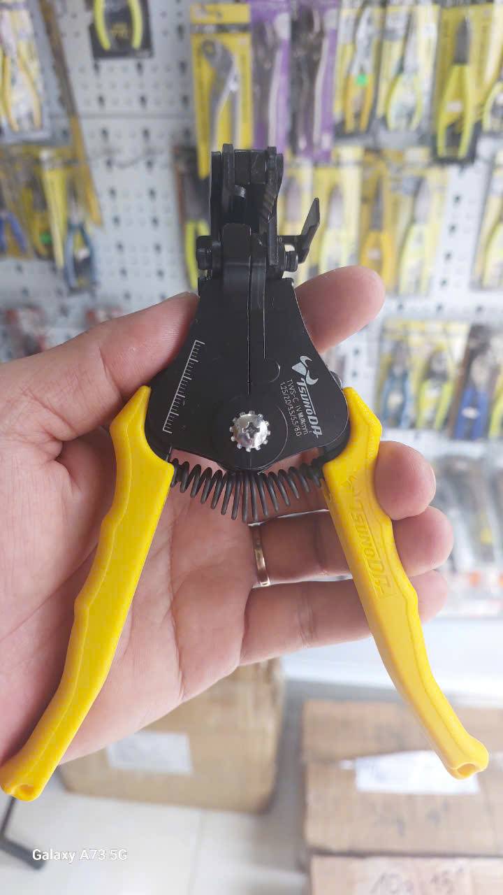 - Thanh đo độ dài (Gauge): Tích hợp thước đo trên kìm giúp tuốt các đầu dây có độ dài đồng nhất một cách chính xác.