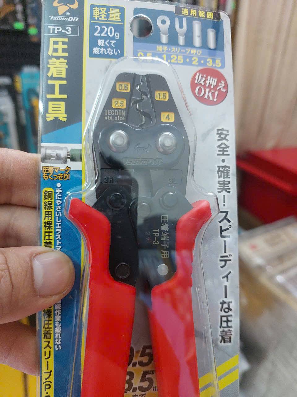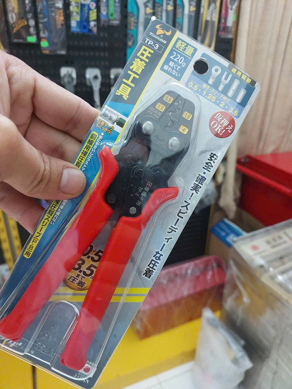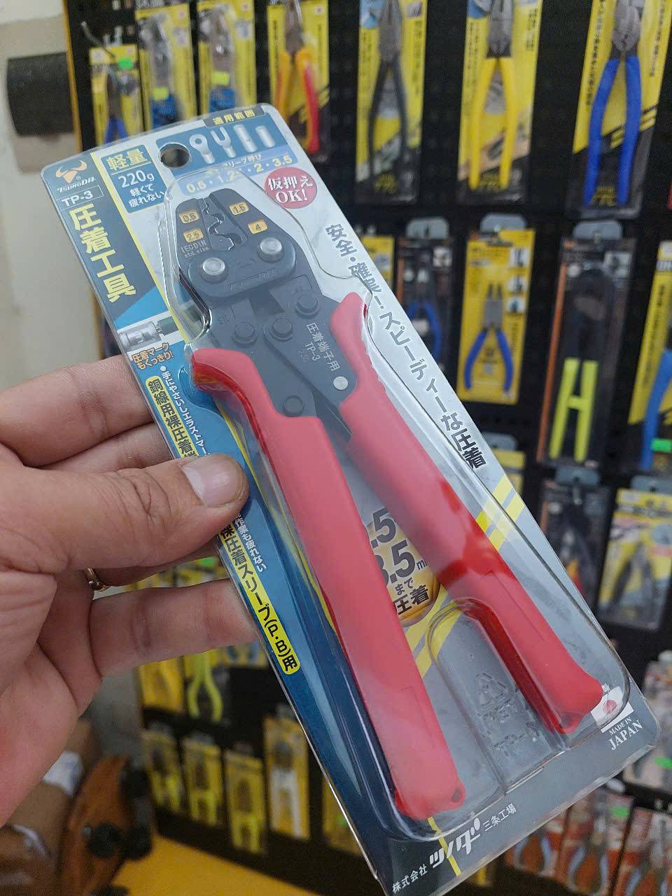 Kìm bấm cos Tsunoda TP-3 là dụng cụ chuyên dụng, nhỏ gọn của Nhật Bản, dùng để bấm các loại đầu cos trần (không cách điện) với các kích thước phổ biến.