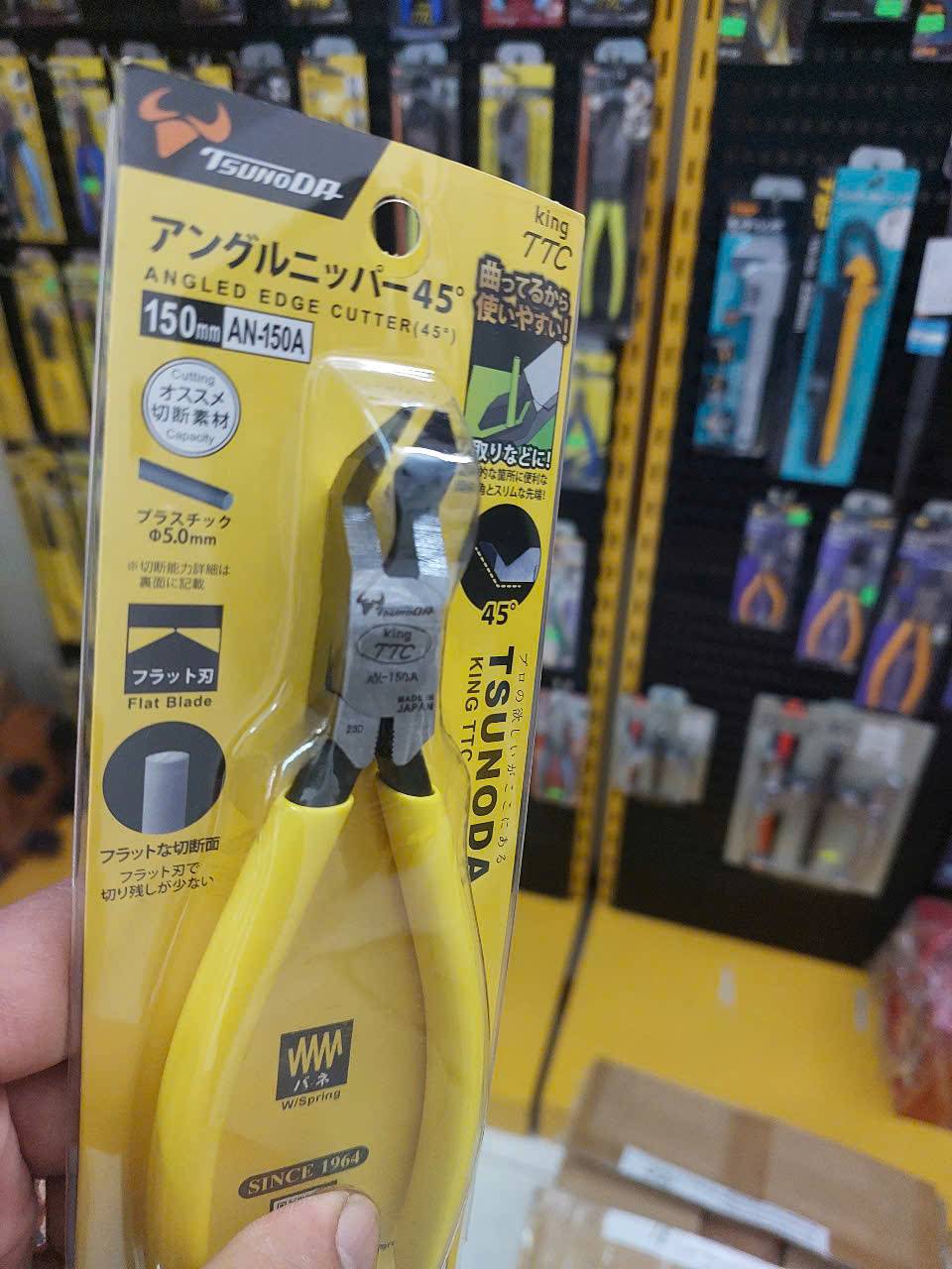 Kìm cắt cạnh góc 45 độ Tsunoda/King TTC AN-150A được làm từ thép hợp kim dùng cho máy móc có lưỡi cắt cong 450 dùng để cắt dây đồng với đường kính 2mm