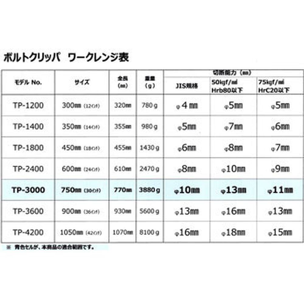 Thương hiệu Taiyo Picus Xuất xứ Nhật Bản Kích thước danh nghĩa 30 inch (750 mm) Tổng chiều dài Khoảng 770 mm Khối lượng 3880 g Khả năng cắt tối đa Đường kính 11 mm (đối với vật liệu cứng 24HRC hoặc mềm hơn 80HRB) Vật liệu đầu cắt Thép hợp kim chất lượng cao, rèn và xử lý nhiệt toàn bộ, độ cứng trên HRC62 Ứng dụng Cắt bu lông, thanh kim loại, dây điện công nghiệp, dây xích