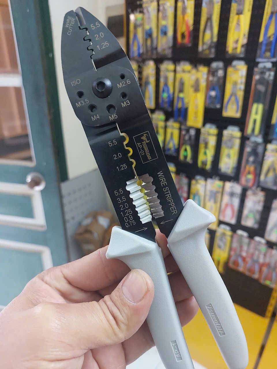 Kìm điện đa năng Tsunoda AP-01 có thể được dùng với rất nhiều chức năng: bấm được cả cos trần, ép cos, cắt dây, tuốt dây, cắt bu lông.
