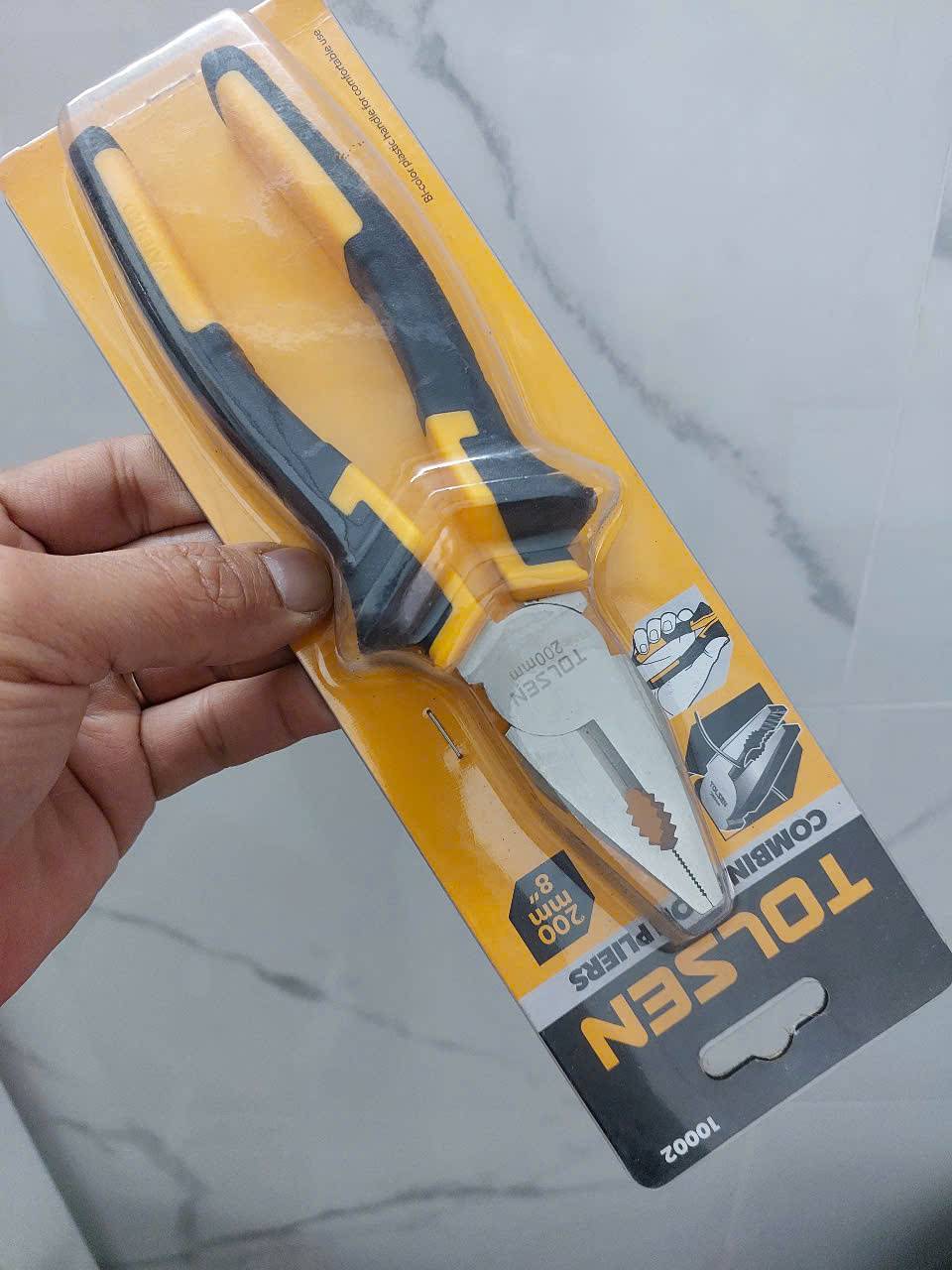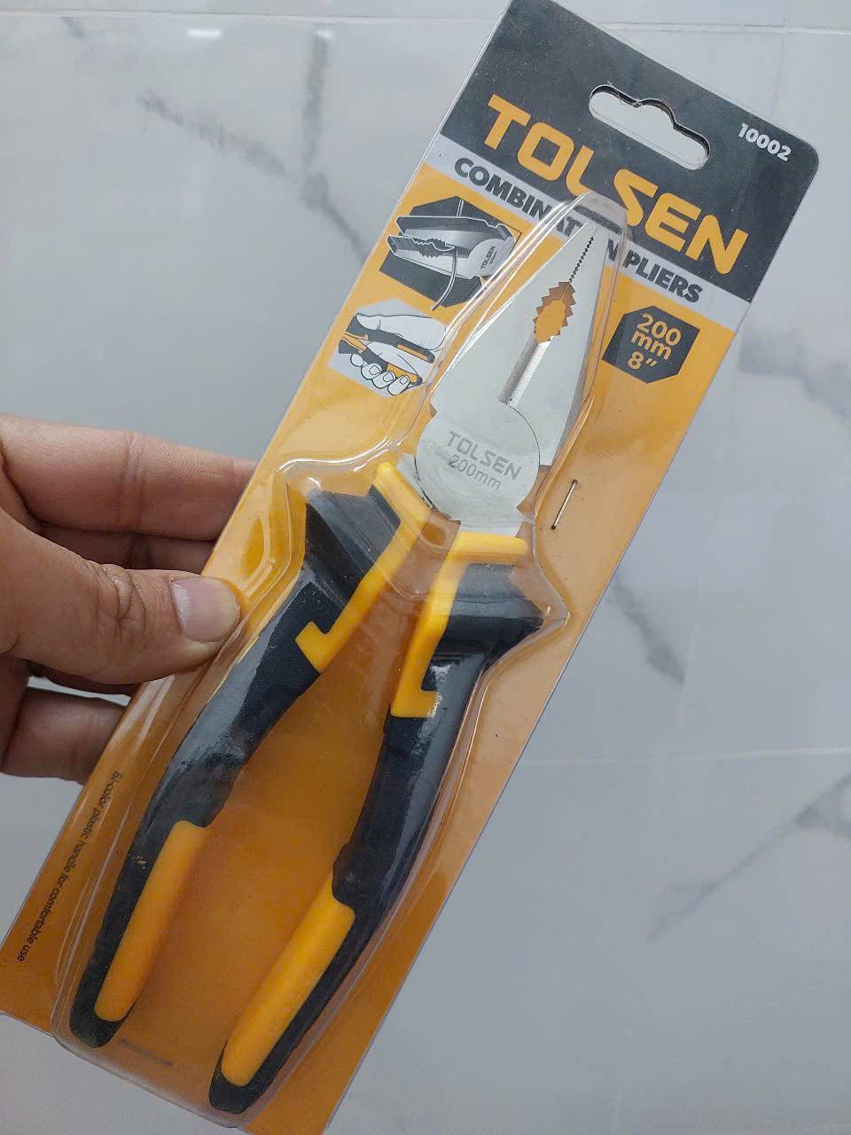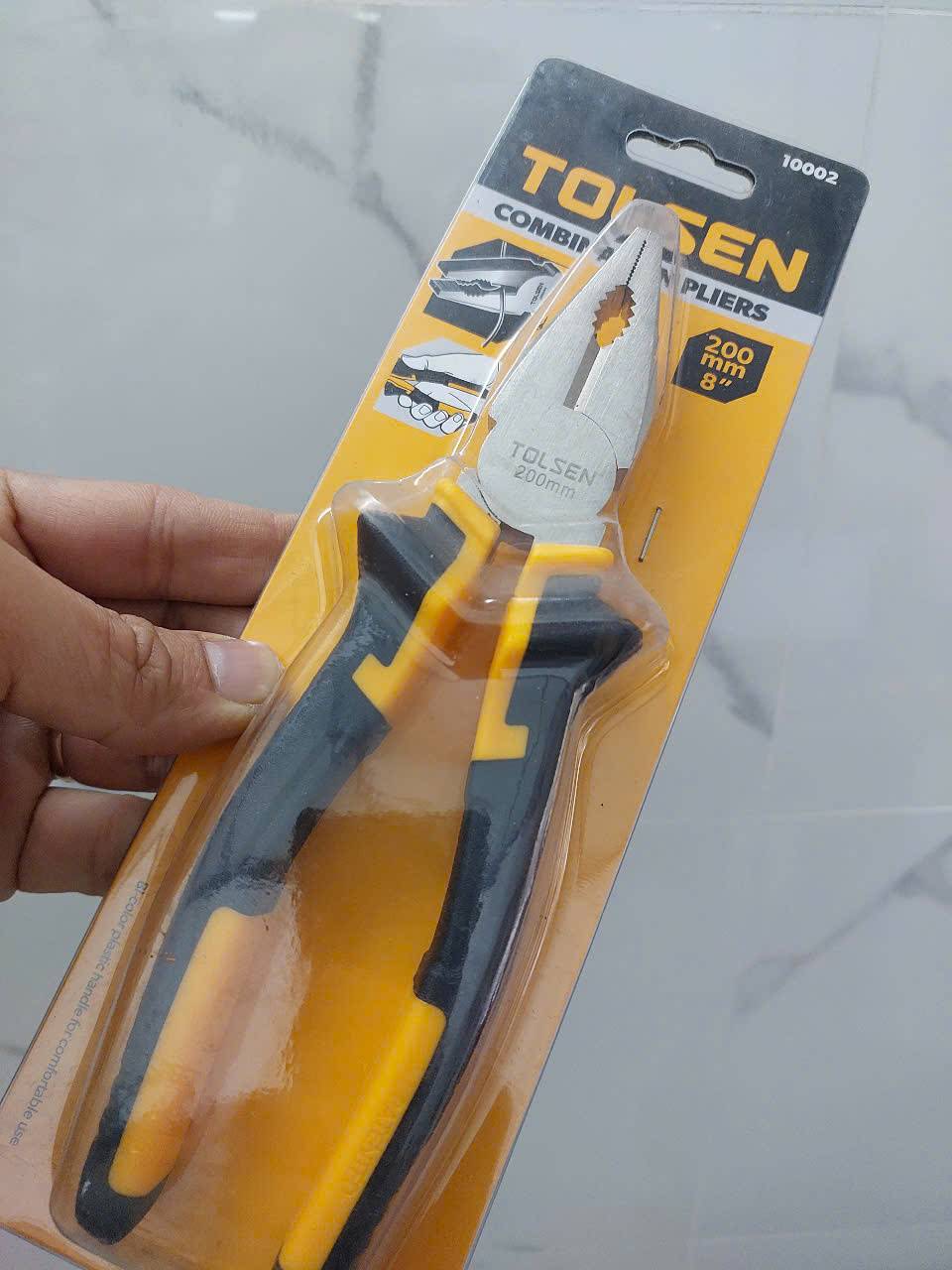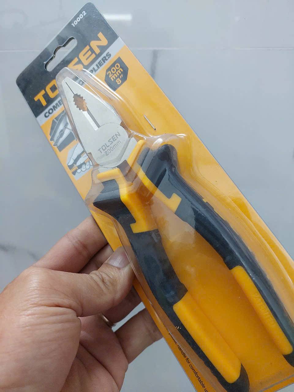 Kìm điện 8″ Tolsen 10002 (8 inch/200mm) là một dụng cụ cầm tay đa năng làm từ thép rèn dập chất lượng cao, được mạ niken để chống gỉ sét. Kìm được thiết kế để thực hiện các công việc cắt, kẹp và uốn dây điện, dây cáp, và các vật liệu kim loại mỏng khác.