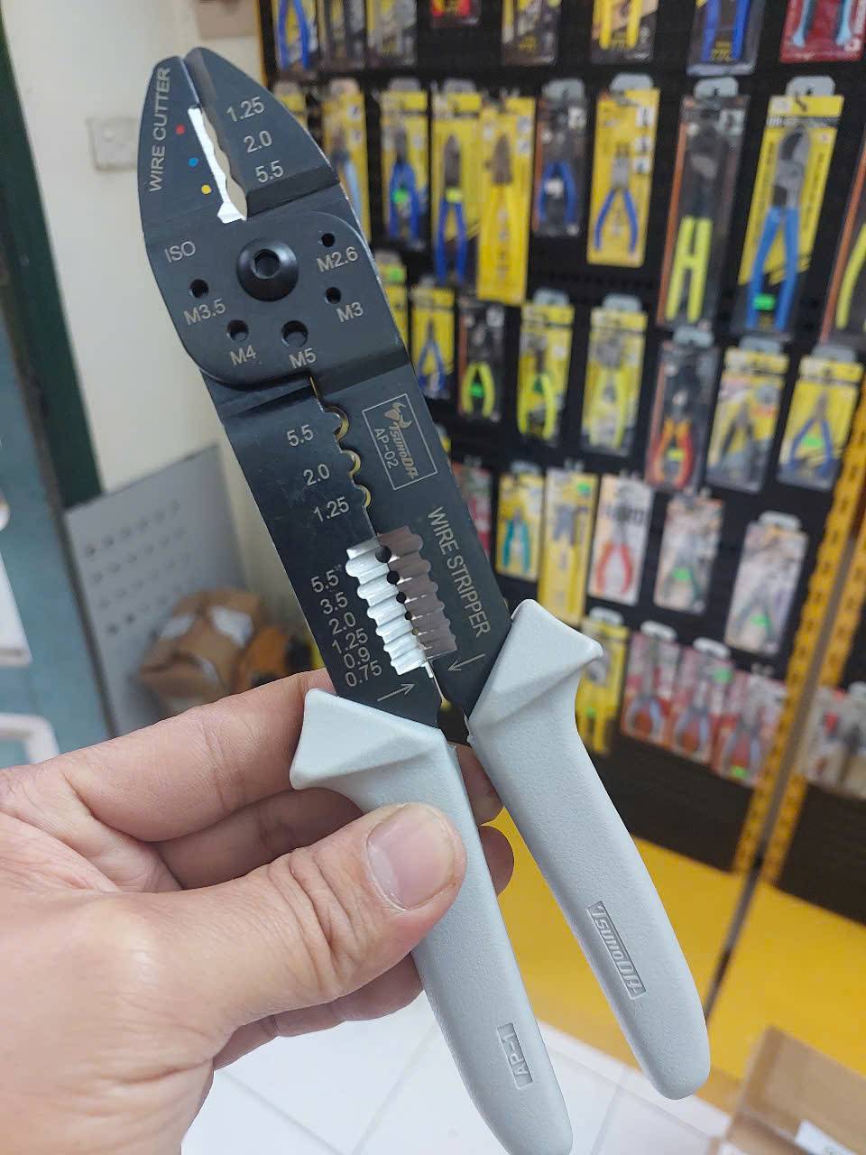 - Gồm nhiều chức năng: có thể bấm được cả cos trần, cắt dây, cắt bu lông, tuốt dây,..