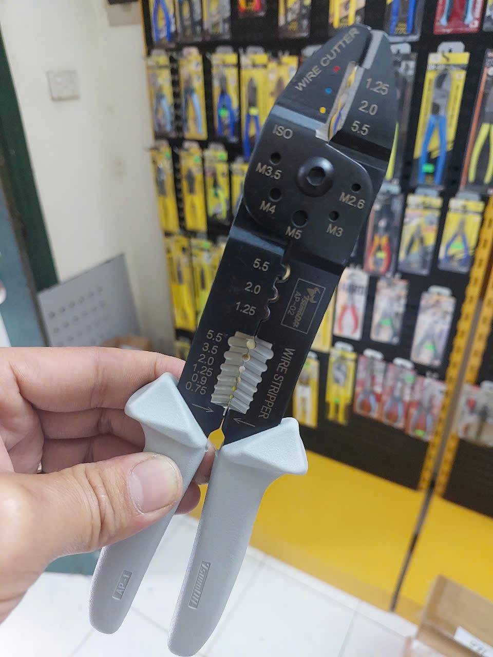 - Kìm điện đa năng Tsunoda AP-02 là dụng cụ rất cần thiết cho các công việc liên quan đến điện, điện tử. Có thể được dùng với rất nhiều chức năng: bấm được cả cos trần, ép cos, cắt dây, tuốt dây, cắt bu lông.