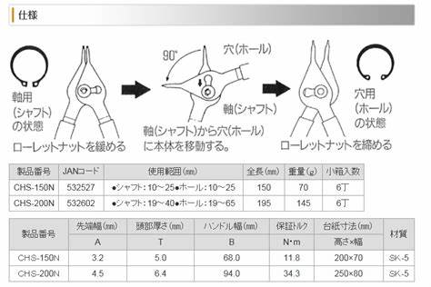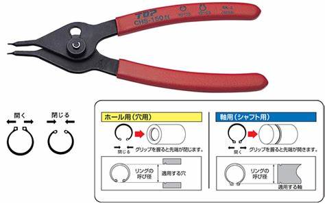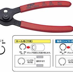 Kìm mở bóp phe mũi thẳng Top Kogyo CHS-200N là sản phẩm cao cấp đến từ Nhật Bản. Với thiết kế nhỏ gọn Chất liệu/Hoàn thiện: Thép công cụ carbon (SK-5). Một công cụ duy nhất có thể được sử dụng làm cả trục và vòng chụp lỗ. Phạm vi sử dụng vòng (mm): Trục 19-40, lỗ 19-65. Chiều dài tổng thể (mm): 195. Đường kính đầu móng vuốt (mm): 1.8. Hình dạng móng: Móng thẳng. Các chức năng có thể dễ dàng chuyển đổi bằng cách thay đổi vị trí của lỗ. Với tay cầm vinyl cứng bền. Giúp người dùng hoàn thành công việc một cách dễ dàng và nhanh chóng.