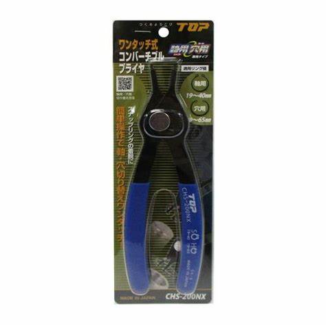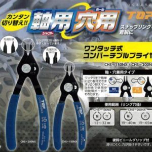 Kìm mở bóp phe mũi thẳng Top Kogyo CHS-200NX là sản phẩm cao cấp đến từ Nhật Bản. Với thiết kế nhỏ gọn Chất liệu/Hoàn thiện: Thép công cụ carbon (SK-5). Một công cụ duy nhất có thể được sử dụng làm cả trục và vòng chụp lỗ. Phạm vi sử dụng vòng (mm): Trục 19-40, lỗ 19-65. Chiều dài tổng thể (mm): 195. Đường kính đầu móng vuốt (mm): 1.8. Hình dạng móng: Móng thẳng. Dễ dàng chuyển đổi giữa trục và lỗ chỉ với thao tác một chạm! Để gắn và tháo vòng chụp khác nhau. Với tay cầm vinyl cứng bền. Giúp người dùng hoàn thành công việc một cách dễ dàng và nhanh chóng.