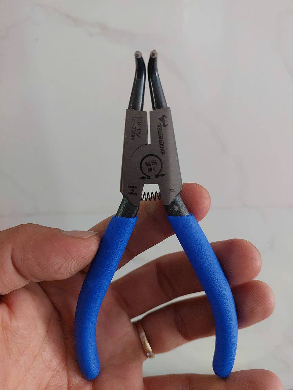 Kìm mở phe mũi cong Tsunoda SEB-125P là dụng cụ cầm tay chuyên dụng dùng để tháo/lắp vòng phe ngoài (external snap rings) trên các trục máy. Sản phẩm được sản xuất tại Nhật Bản bởi thương hiệu Tsunoda (King TTC)
