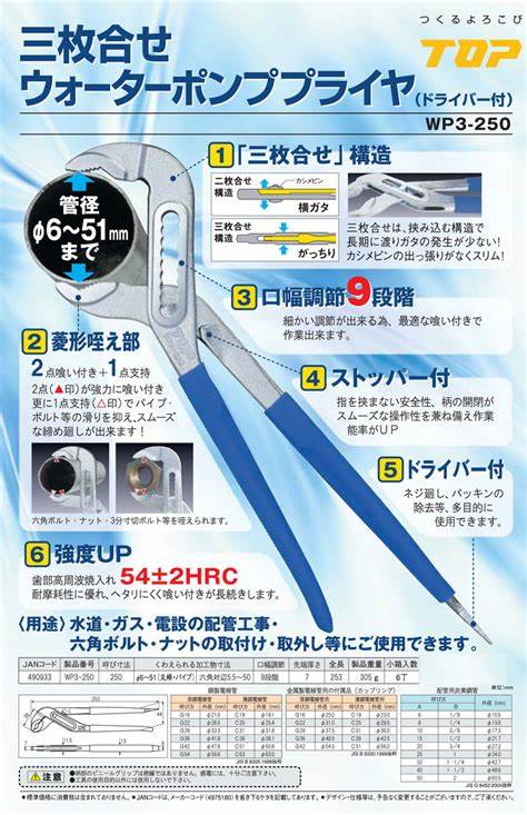 Đặt mua Kìm mỏ quạ cán tô vít Top Kogyo WP3-250, WP3-300