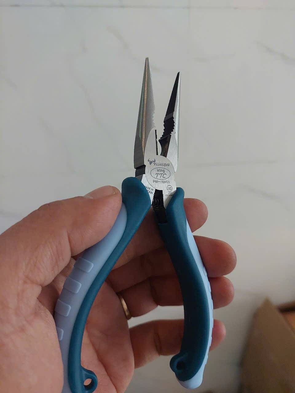 Kìm mũi nhọn có lỗ tuốt dây và lò xo 150mm Tsunoda PRP-150HGS là sản phâm cao cấp đến từ Nhật bản. Được làm từ thép carbon cho máy móc (S58C). Dùng để kẹp các phôi nhỏ hoặc các vật phẩm không thể chạm bằng tay. Phần đầu kẹp mũi nhọn có răng cưa . Có thể dùng để, giữ, vặn, cắt đồ vật và uốn miếng kim loại, tuốt dây điện.