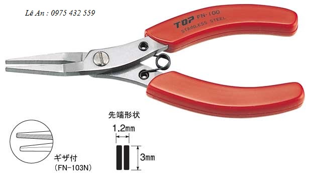 - Sản phẩm Kìm nhọn không gỉ đầu bằng hàm phẳng Top Kogyo được phân phối bởi công ty TNHH Thương Mại Lê An.