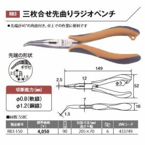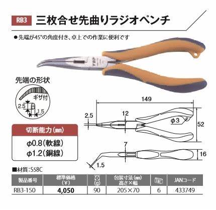 Đặt mua Kìm nhọn mũi cong 45 ° Top Kogyo RB3-150