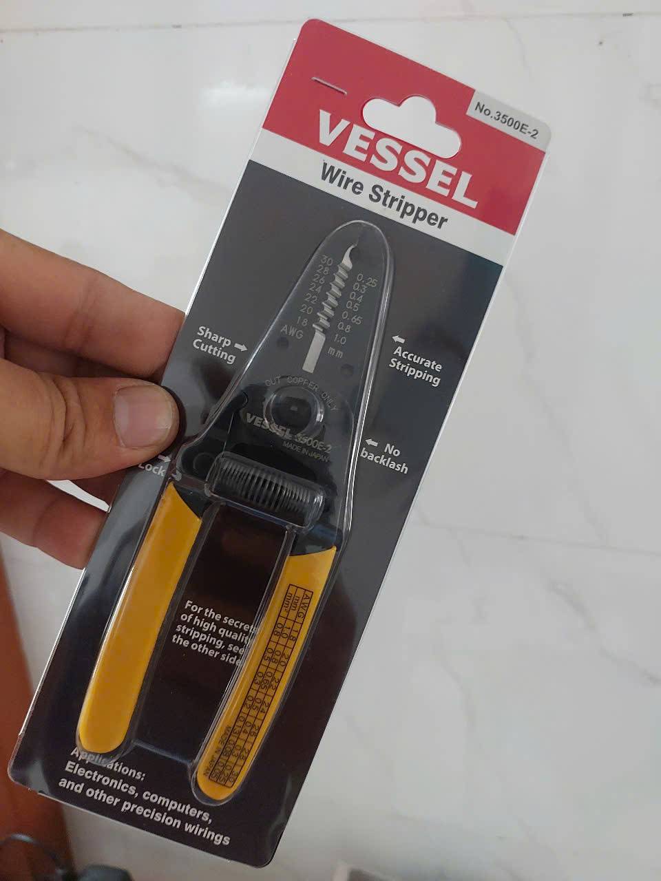 Kìm tuốt dây Vessel 3500E-2 là dụng cụ cầm tay nhỏ gọn, trọng lượng nhẹ, được thiết kế chuyên biệt để tuốt và cắt dây điện chính xác.