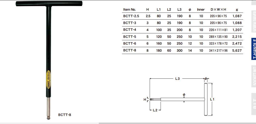 Lục giác chữ T đầu bi EIGHT BCTT-5 - Kích thước đầu: 5 mm.
