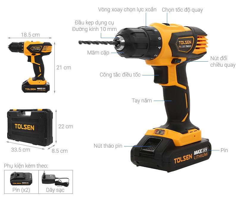 Máy khoan Pin 20V Tolsen 79033