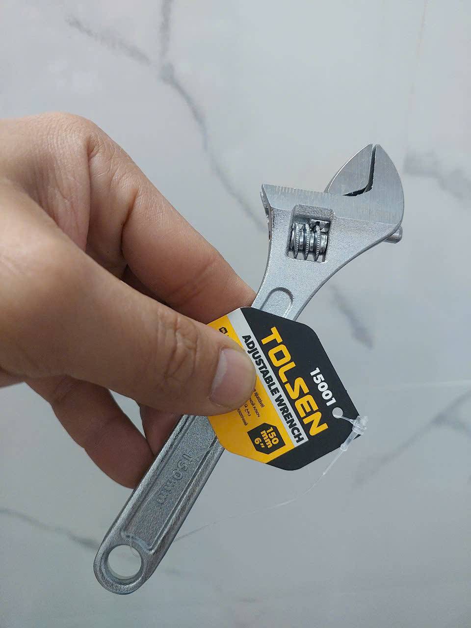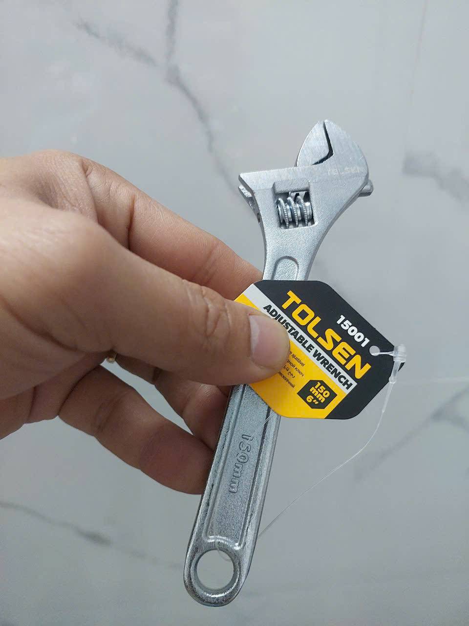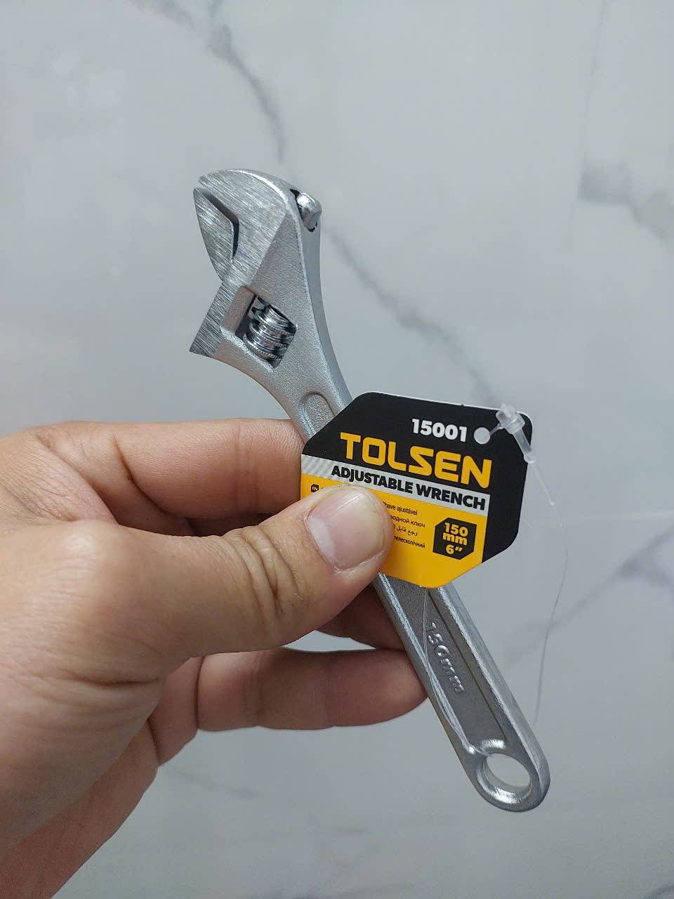 Mỏ lết 6”/150mm Tolsen 15001 là một dụng cụ cầm tay bền bỉ, được làm từ thép rèn và mạ crôm để chống ăn mòn, phù hợp cho nhiều công việc sửa chữa cơ khí và gia đình