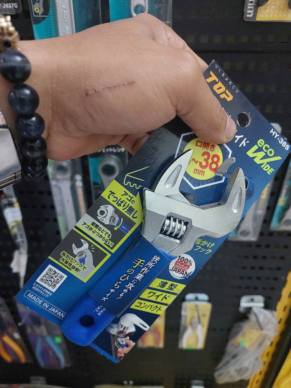 Mỏ lết mini miệng rộng Top Kogyo HY-38S là một dụng cụ nhỏ gọn, sản xuất tại Nhật Bản, nổi bật với khả năng mở rộng hàm lớn so với kích thước thân