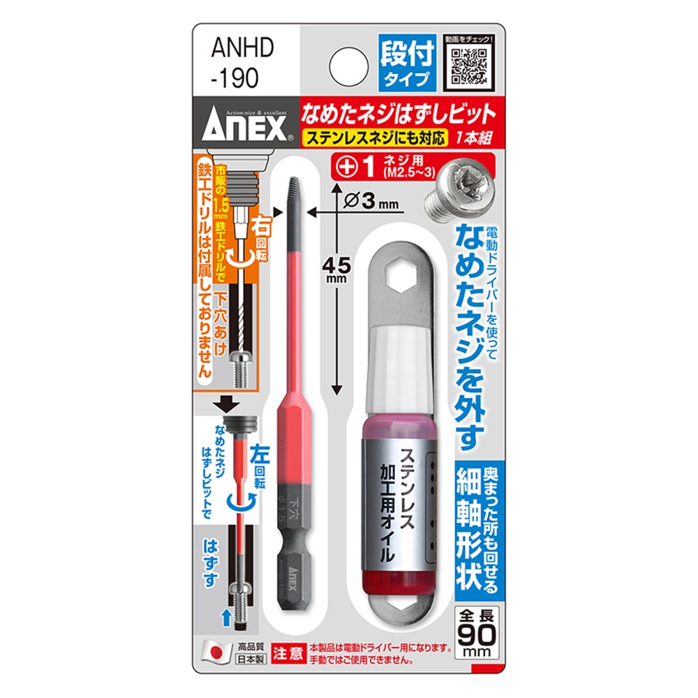 Mũi tháo vít gỉ Anex ANHD-190 Là sản phẩm cao cấp đến từ Nhật bản. Sử dụng máy khoan điện và mũi khoan này để tháo các vít bị gỉ sét lâu ngày (vít có rãnh chéo bị dập, toét đầu).