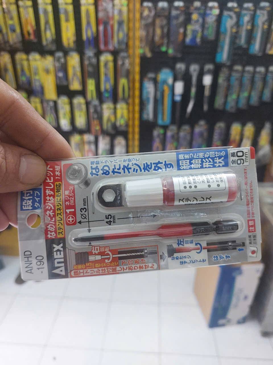 Mũi tháo vít gỉ Anex ANHD-190 là dụng cụ chuyên dụng từ Nhật Bản, được thiết kế để tháo các loại vít bị rỉ sét hoặc toét đầu có kích thước nhỏ (M2.5 – M3)