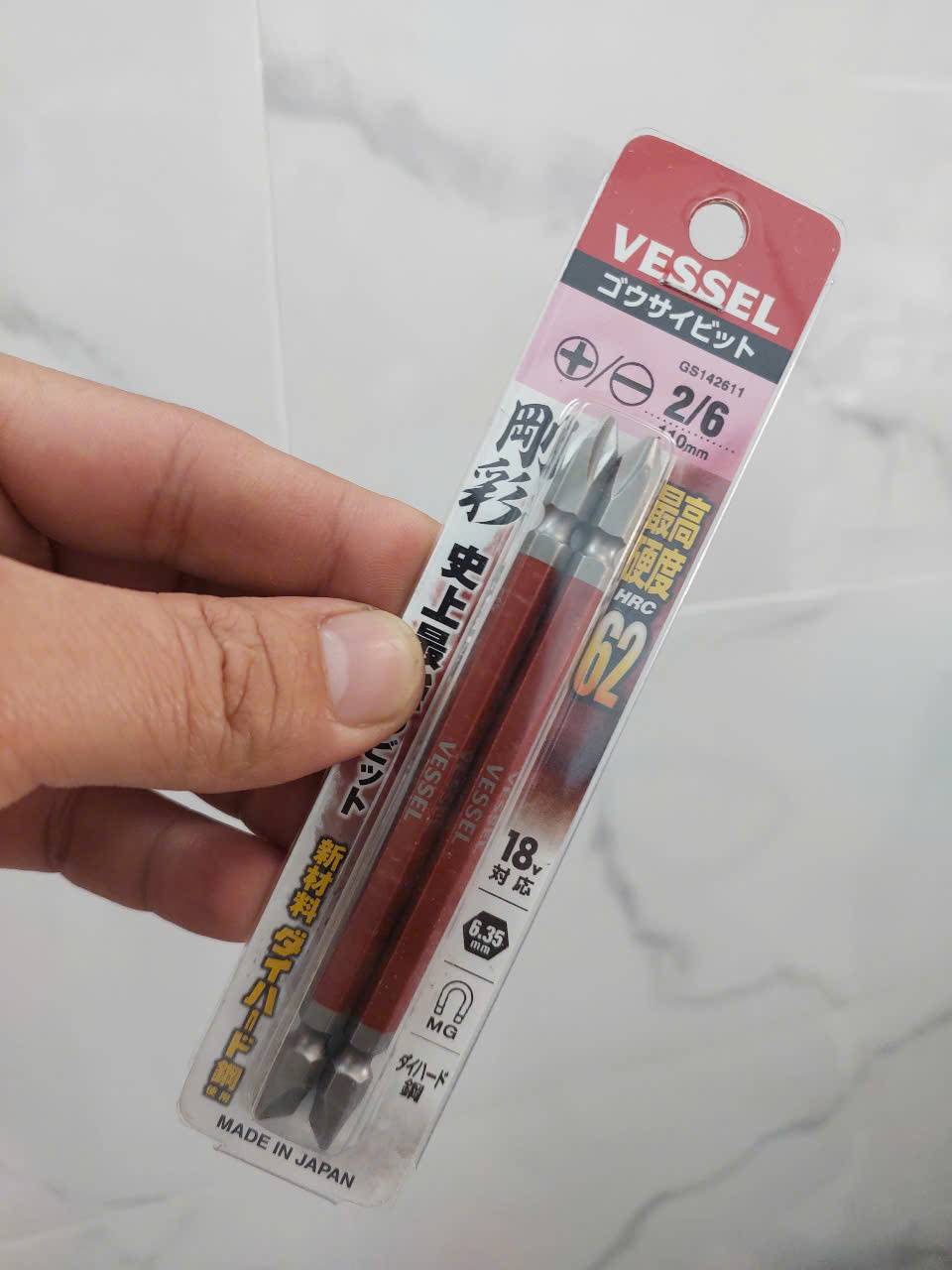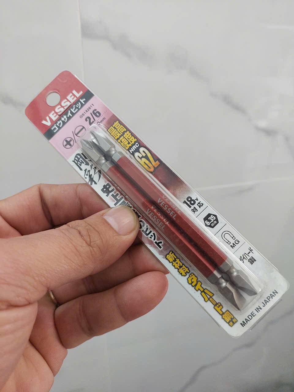 - Độ bền vượt trội: Sử dụng kỹ thuật nhiệt luyện độc đáo của Vessel, vật liệu thép Die-hard mang lại độ bền gấp nhiều lần so với các loại mũi vít thông thường, chống gãy vỡ khi làm việc ở cường độ cao.