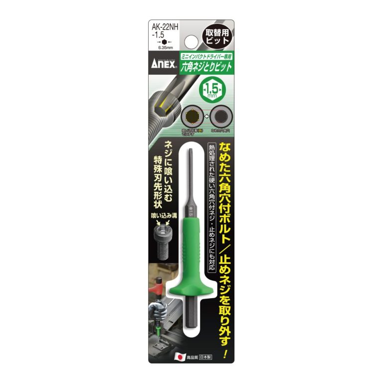 Mũi vít tháo vít gỉ lục giác Anex AK-22NH-1.5 là sản phẩm chuyên dụng xuất xứ từ Nhật Bản, được thiết kế để tháo các vít lục giác H1.5 bị gỉ sét, toét đầu
