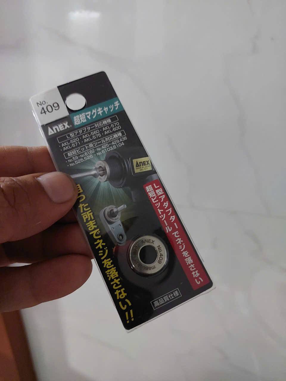 Nam châm trợ lực loại ngắn Anex No.409 (tên gốc: Mag Catch for Ultra-short Tools) là phụ kiện tăng lực từ tính cho các dụng cụ cầm tay, được thiết kế đặc biệt để sử dụng trong không gian hẹp