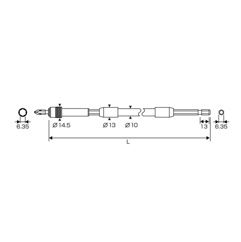 Thanh nối mũi vít dài Anex ALH-250 Là sản phẩm cao cấp đến từ Nhật bản. Để bắt vít ở những nơi khó tiếp cận và những nơi sâu. Tổng chiều dài 250 mm (khi không gắn mũi đầu). Với Đường kính trục tối đa Φ 14,5 mm lý tưởng để bắt vít ở những không gian sâu và hẹp. Trục lục giác 6,35mm cho tua vít tương thích tác động/điện/sạc. Bộ sản phẩm Bao gồm: Thân giá đỡ, mũi khoan hai đầu (+2 x 45)