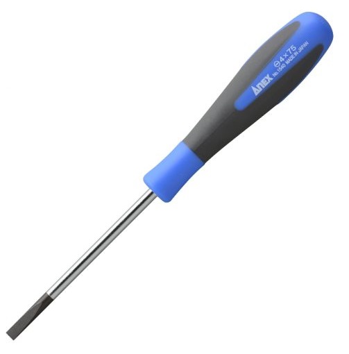 Tô vít 2 cạnh Anex No.1540-4×75 Là sản phẩm cao cấp đến từ Nhật bản. Chất liệu: Cạnh lưỡi: Chrome, molypden, thép vanadi. Tay cầm: Polypropylen, TPE. Dùng để bắt vít các máy móc chính xác như thiết bị điện, máy tính, máy ảnh, v.v. Loại trục mỏng có thể chạm tới các khu vực sâu và hẹp. Tay cầm mỏng không gây hư hại cho ốc vít nếu không dùng lực quá mạnh.