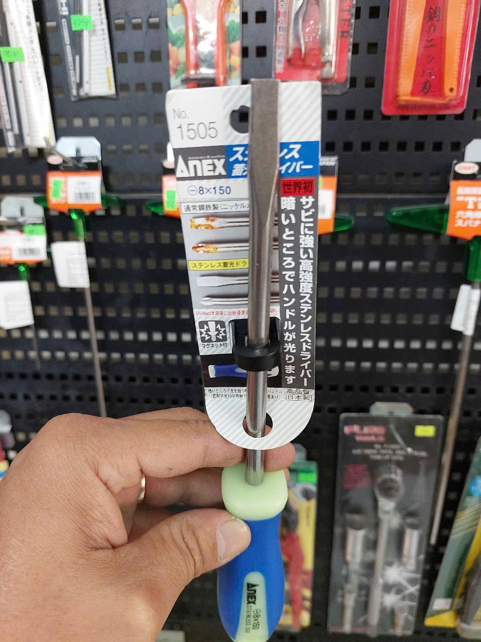 Tô vít 2 cạnh phát quang không gỉ Anex No.1505-8×150 là một dụng cụ cao cấp của Nhật Bản, nổi bật với khả năng chống gỉ sét vượt trội và tay cầm có thể phát sáng trong bóng tối.