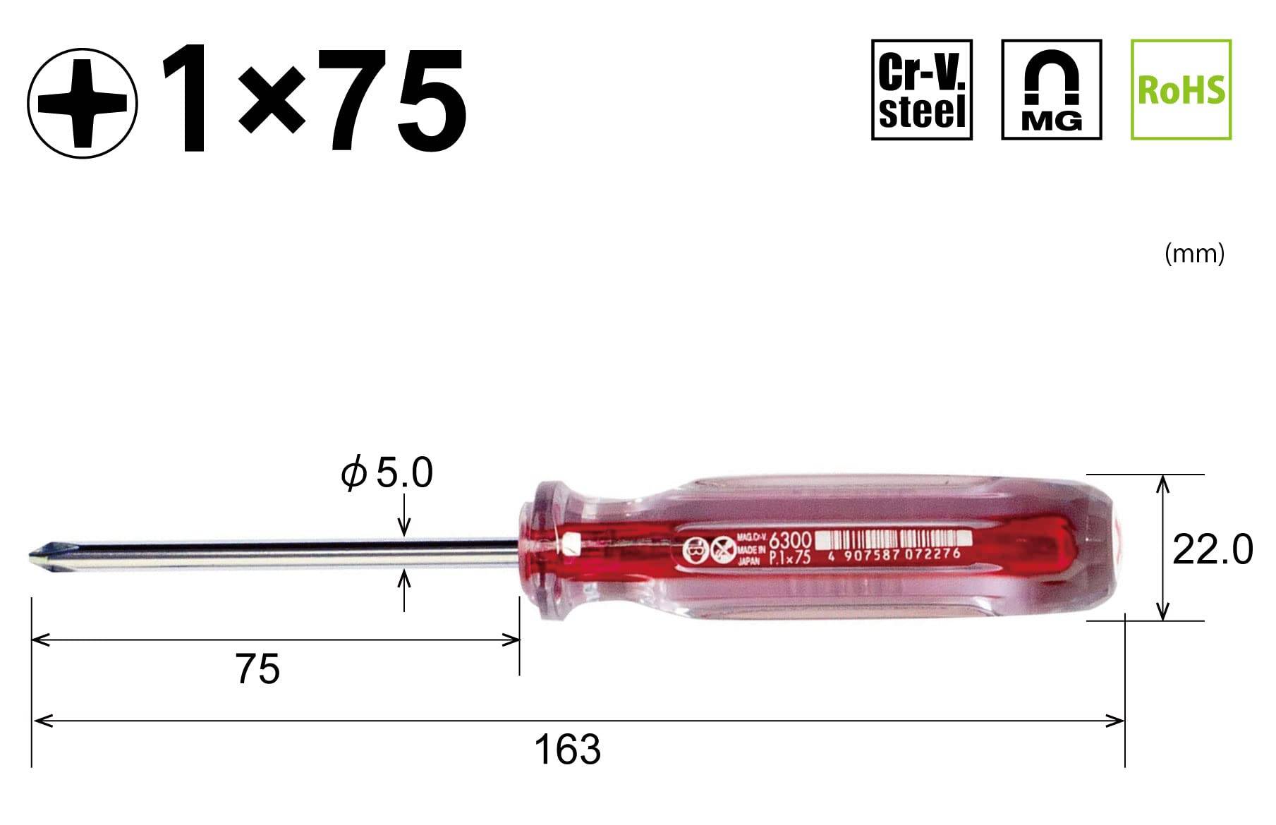 Tô vít 4 cạnh cán trong VESSEL No.6300+1×75 - – Mũi vít: +1 (PH1)