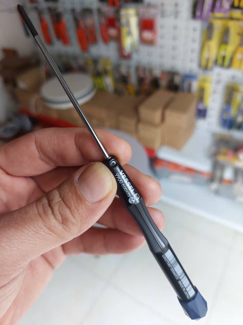 Tô vít bake 4 cạnh Vessel No.9900+00×75(Nắp xanh xuất khẩu) được đánh giá cao bởi các thợ sửa chữa laptop và thiết bị điện tử nhờ chất lượng thép tuyệt vời và độ chính xác cao