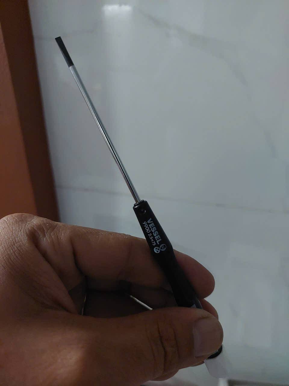 Tô vít dẹp 2 cạnh Vessel No.9900-2.5×75 Nhật Bản(Nắp trắng xuất khẩu) là dòng tua vít điện tử chính xác cao, được sản xuất tại Nhật Bản. Phiên bản nắp trắng là ký hiệu dành cho thị trường xuất khẩu (thường đi kèm mã 9900E), trong khi nắp màu khác có thể dành cho thị trường nội địa Nhật.
