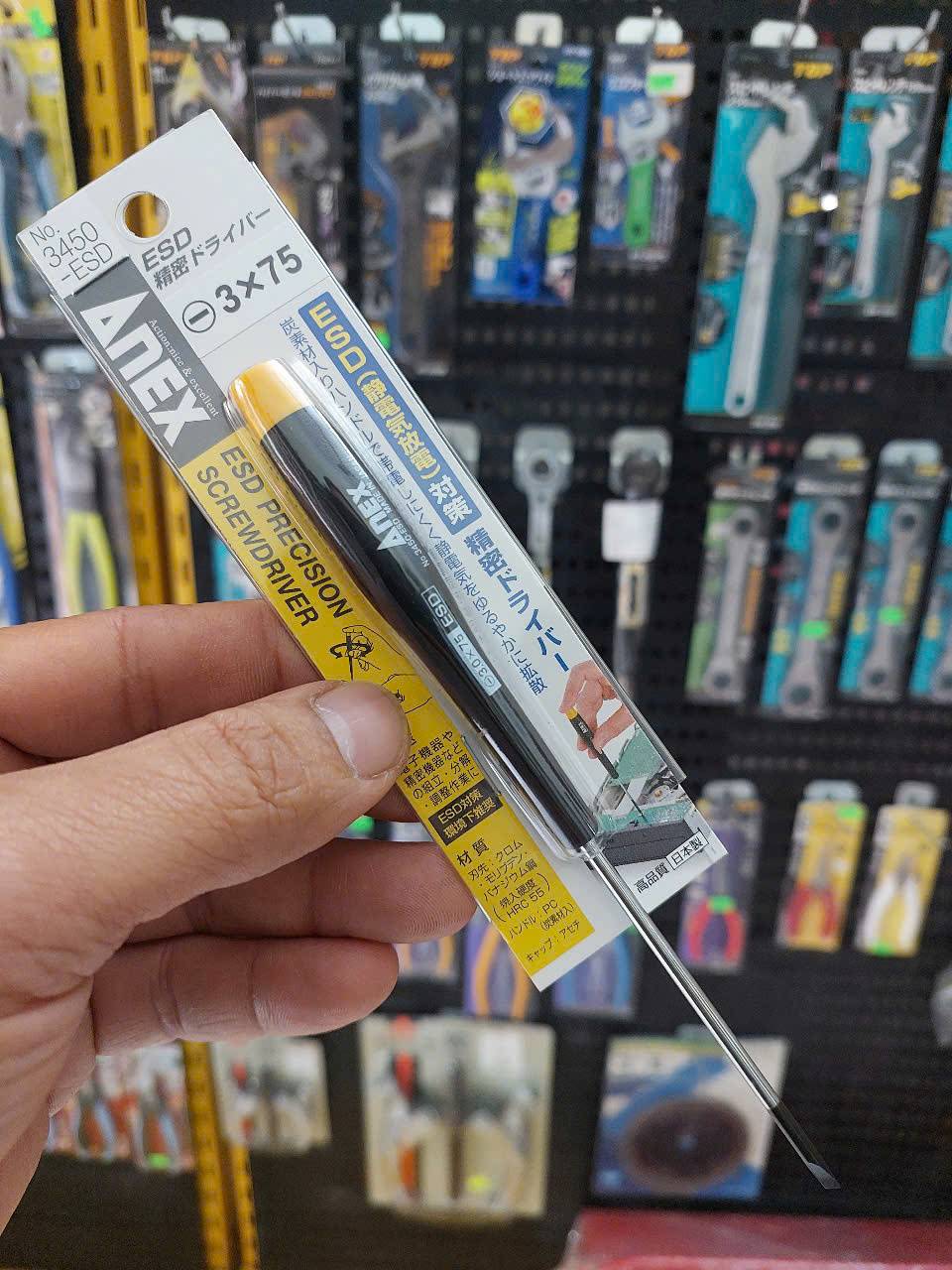 Tô vít điện tử chống tĩnh điện Anex No.3450-ESD-3×75 là một công cụ chính xác chuyên dụng, được sản xuất tại Nhật Bản, thiết kế để bảo vệ các linh kiện điện tử nhạy cảm khỏi hư hỏng do tĩnh điện.