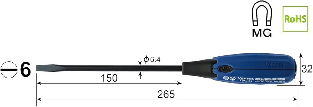 Đặt mua Tô vít đóng 2 cạnh cán siêu êm VESSEL No.730-6×150