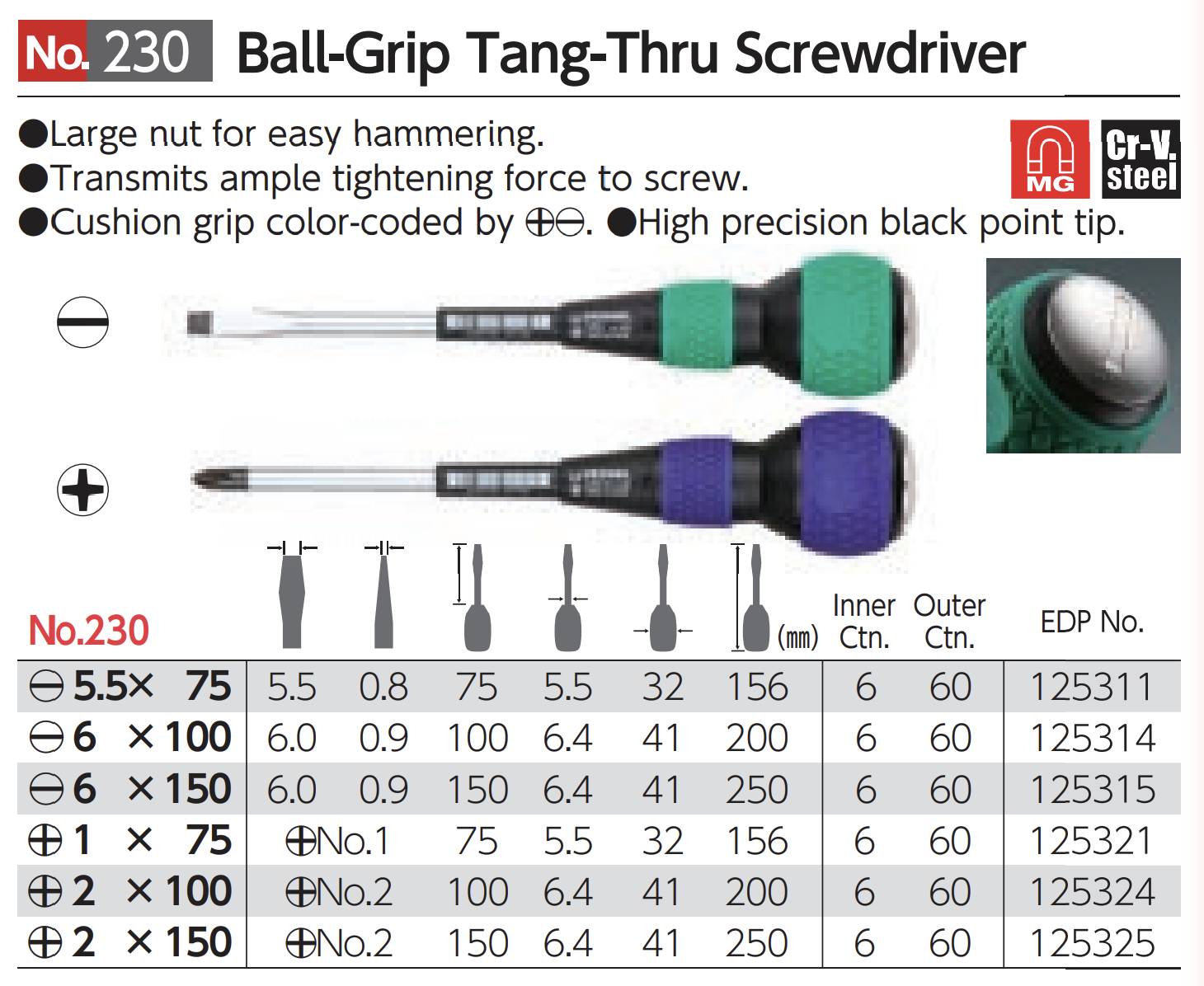 Tô vít đóng 2 cạnh cán tròn Vessel 230(Slotted 6 x 150) - Đặc điểm nổi bật của tuốc nơ vít đóng Nhật Bản tay tròn No.230: