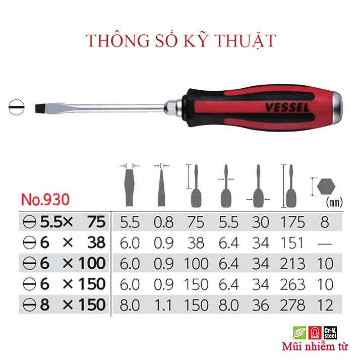 Đặt mua Tô vít đóng 2 cạnh VESSEL No.930-5.5×75