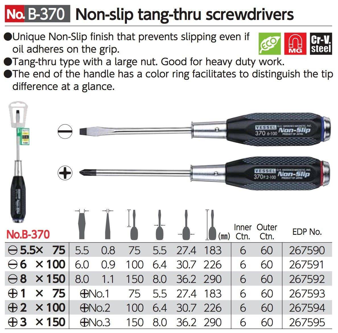 Đặt mua Tô vít đóng 4 cạnh chống trượt VESSEL B-370 +2×100
