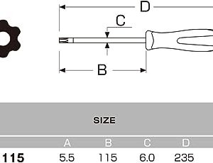 - Tên đầy đủ: Tô vít hoa thị có lỗ Anex No.6300-T30x115