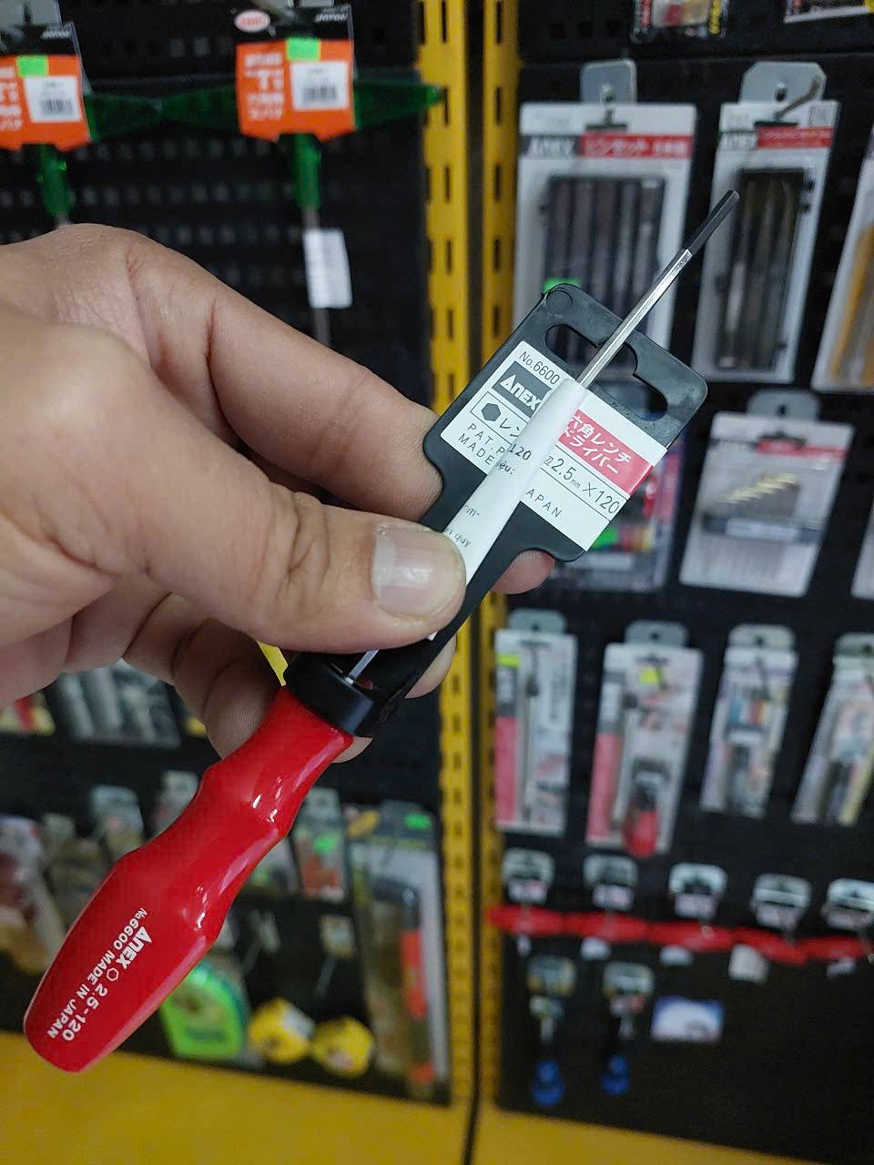Tô vít lục giác Anex No.6600-H2.5×120 là một công cụ chất lượng cao được sản xuất tại Nhật Bản, chuyên dùng để siết chặt hoặc nới lỏng bu lông và vít có đầu lục giác, đặc biệt phù hợp cho các vị trí sâu và hẹp