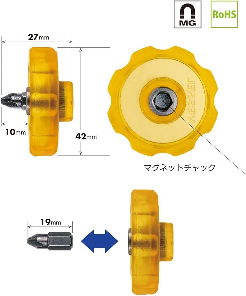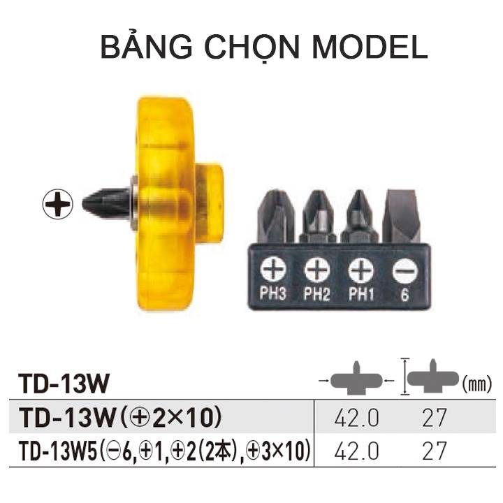 Tô vít ngắn Komadora đổi đầu No.TD-13W - Chiều dài tổng thể: 27mm.